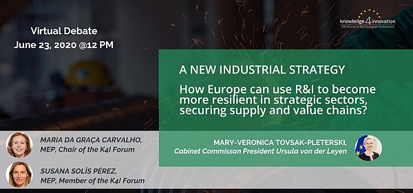 A eurodeputada Maria da Graça Carvalho participou num debate virtual promovido pelo Fórum Knowledge4Innovation (K4I) intitulado "A new Industrial Strategy: how Europe can use R&I to become more resilient in strategic sectors, securing supply and value chains?" que contou com a presença de Mary-Veronica Tovsak-Pleterski, membro do Gabinete da Presidente da Comissão Europeia, de Bernd Schäfer, CEO do EIT RawMaterials, e de Carlos Lee, Diretor Geral do EPIC (European Photonics Industry Consortium).