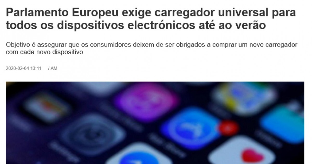 O Parlamento Europeu (PE) instou a Comissão Europeia a tomar medidas até julho para a introdução de um carregador comum para telemóveis e outros aparelhos portáteis para reduzir os resíduos e fomentar escolhas sustentáveis dos consumidores.