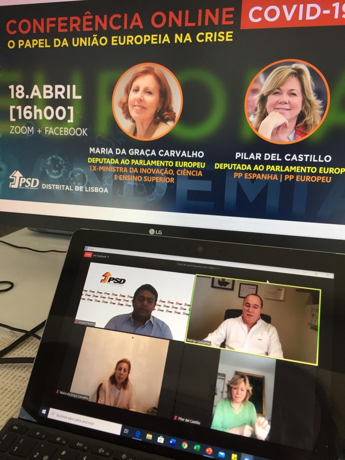 PSD Distrital de Lisboa promoveu a Conferência Online "O papel da União Europeia na crise", com a participação das Deputadas ao Parlamento Europeu, Maria da Graça Carvalho e Pilar del Castillo, PP Espanha.