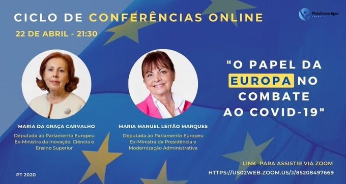 A plataforma e-Gov organizou uma Conferência Online sobre "O papel da Europa no combate ao Covid-19", que contou com a participação das Eurodeputadas Maria da Graça Carvalho e Maria Manuel Marques Leitão. A conferência foi moderada por Nuno Barreto e Rodrigo Gonçalves, membro da Plataforma e-Gov.